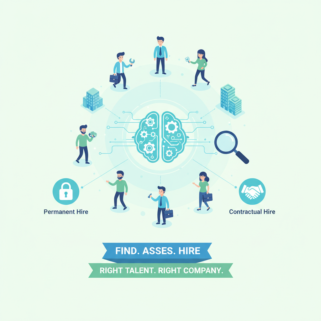 We provide both permanent hiring services and contractual hiring services that help businesses find the right candidates more efficiently, reduce costs, and improve the overall quality of hires. Our work landscape is evolving with new technologies, such as AI and automation, that are transforming recruitment.