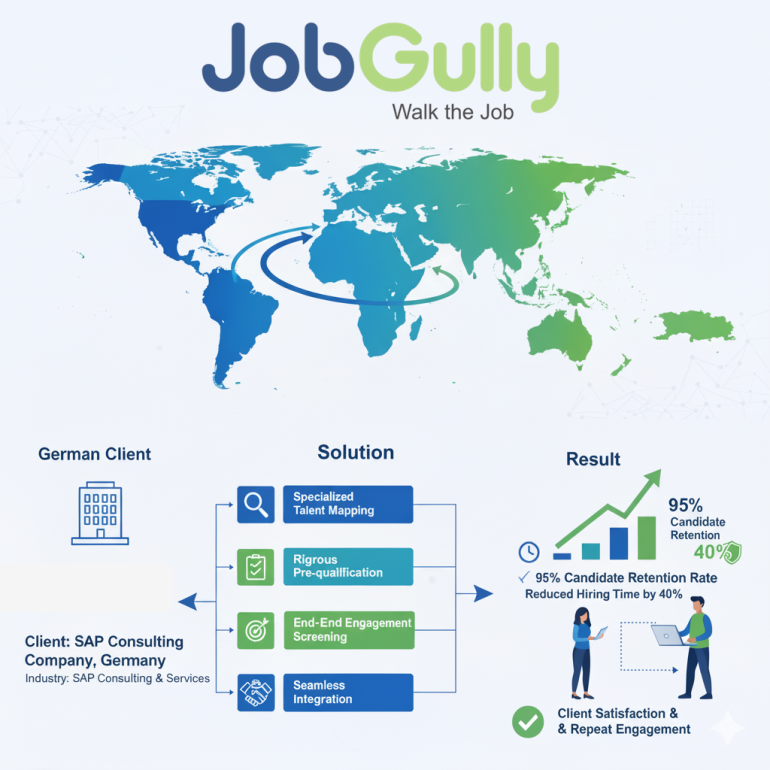 JobGully is a leading recruitment company, vertical of Aritone Global Ventures Limited with expertise in providing best talents in IT and non-IT sectors to global clients. We offer a wide range of recruitment services including manpower hiring, RPO, and HRO solutions that best cater the needs of businesses.